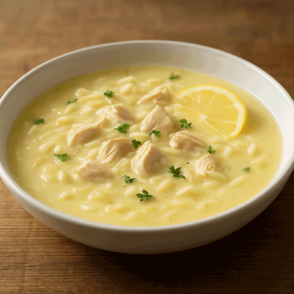 Avgolemono is a classic Greek soup known for its comforting warmth and bright, silky texture. The name comes from avgo (egg) and lemono (lemon), the two key ingredients that give the soup its signature creamy consistency and refreshing citrus finish—without the use of cream.