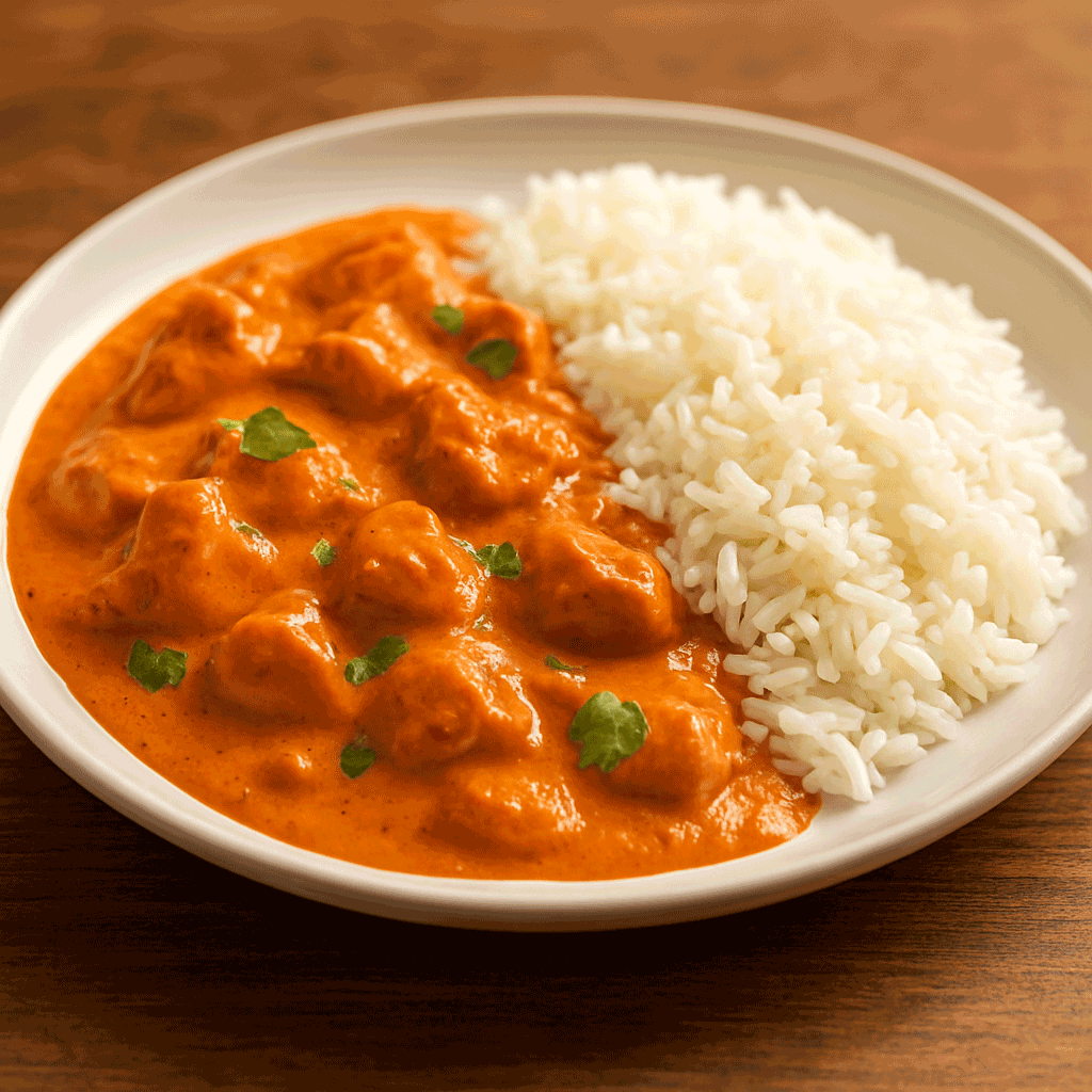 Mild, creamy butter chicken served with fluffy rice—warm, comforting, and an easy way to introduce kids to Indian cuisine.