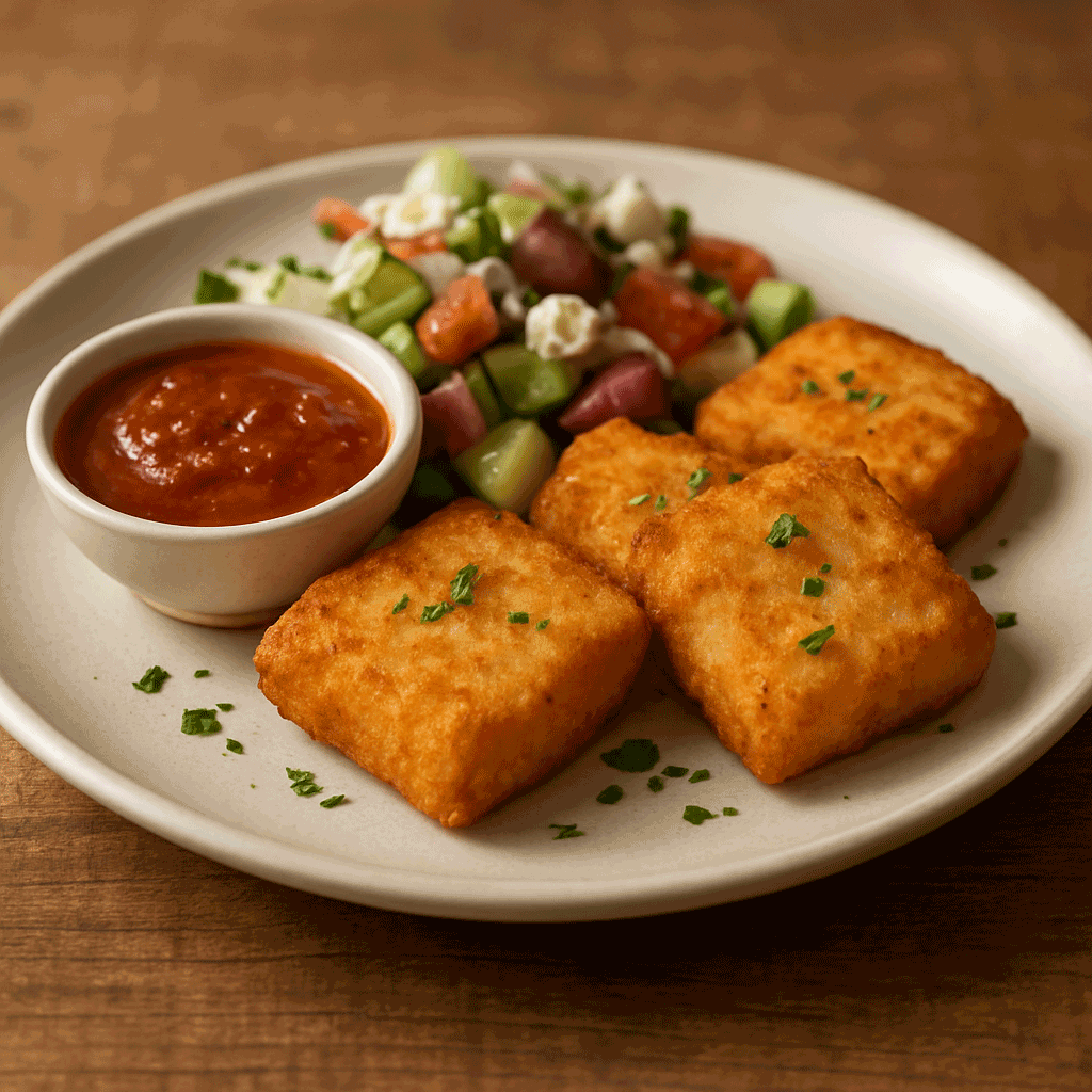 A bold Mediterranean twist on a classic favorite. These crispy bites feature creamy, tangy feta cheese, lightly breaded and fried until golden, offering a satisfying crunch on the outside and rich, savory flavor inside. Inspired by traditional mozzarella sticks but elevated with the unmistakable bite of feta, they’re perfect for sharing and packed with Greek flair in every bite.
